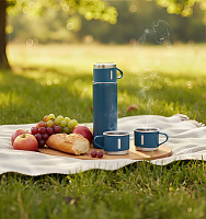 Термос, 2 кружки в чехле: 26х16х10 см; термос 500 мл; кружки 220 мл; металл, нейлон