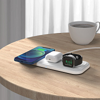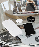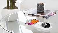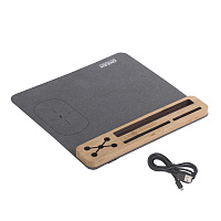Настольная подставка с беспроводным зарядным устройством, переработанная кожа/бамбук