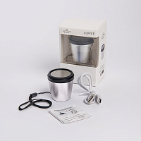 Чашка с ложкой на подставке MORKE 180мл,16,4х8х12,3 см, боросиликатное стекло, бамбук