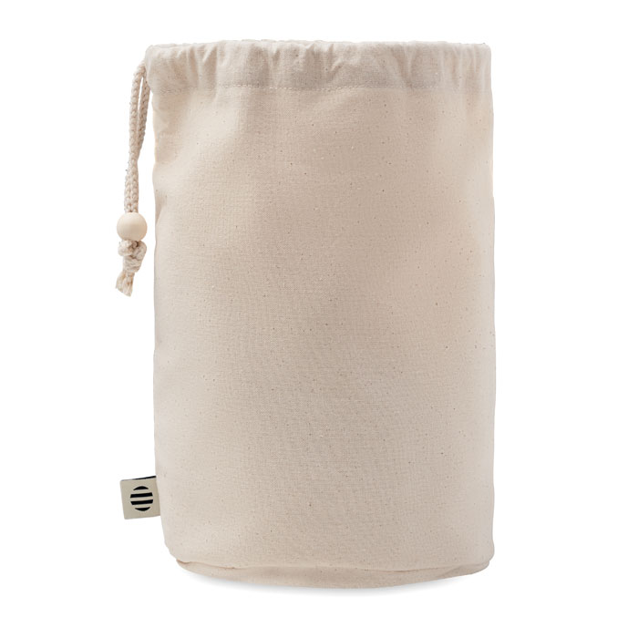 Сумка-мешок для аксессуаров среднего размера из органического хлопка. 220 гр/м². Имеет внутренние сетчатые отделения и деревянную застежку. -