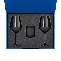 Подарочный набор свеча Энигма (Enigma) + 2 бокала для вина Сапфир (Sapphire) в серой коробке