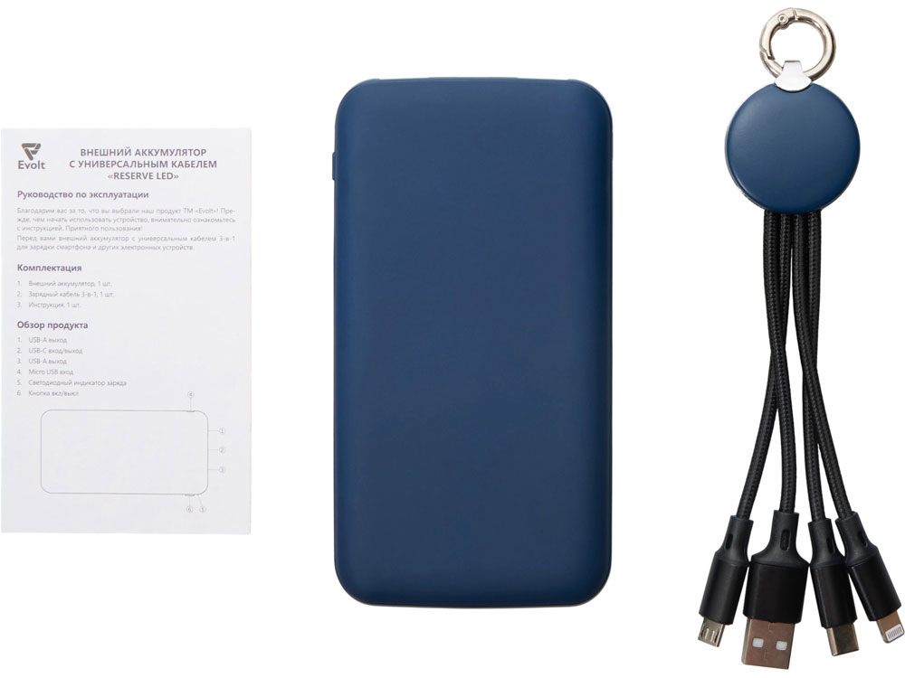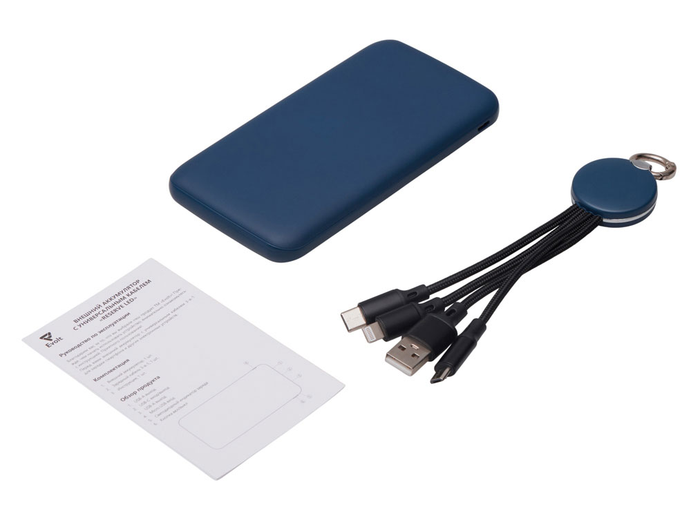 Набор из внешнего аккумулятора и универсального кабеля с подсветкой лого Reserve LED, 10000mAh