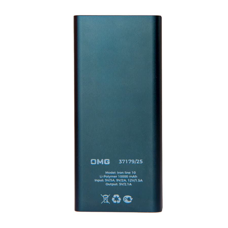 Универсальный аккумулятор Iron line 10 (10000 мАч), металл, синий, 14,7х6.6х1,5 см