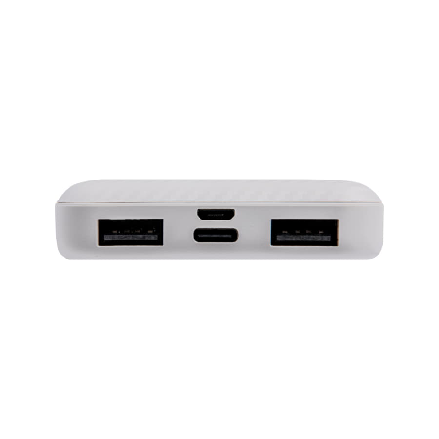 Внешний аккумулятор имеет пластиковый матовый корпус. Пауэрбанк заряжается через универсальный порт Type C или  Micro-USB  и отдает энергию через два классических порта USB. Благодаря встроенному в корпус индикатору уровня заряда батареи, удобно следить за расходом батареи.  Емкость      батареи: 5 000 мАч  Тип      батареи: литий-полимер  Материал      корпуса: пластик  Входные порты: Micro-USB,  Type-C  Выходные      порты: USB  Входное      напряжение   Ток: 5 В   2 A  Выходное      напряжение   Ток: 5 В   2 A  Провод для      зарядки в комплекте  Индикатор      уровня заряда батареи, 4 светодиода В комплект входит:  1. Универсальный аккумулятор2. USB кабель с разъемами USB-A и  Type-C  для зарядки