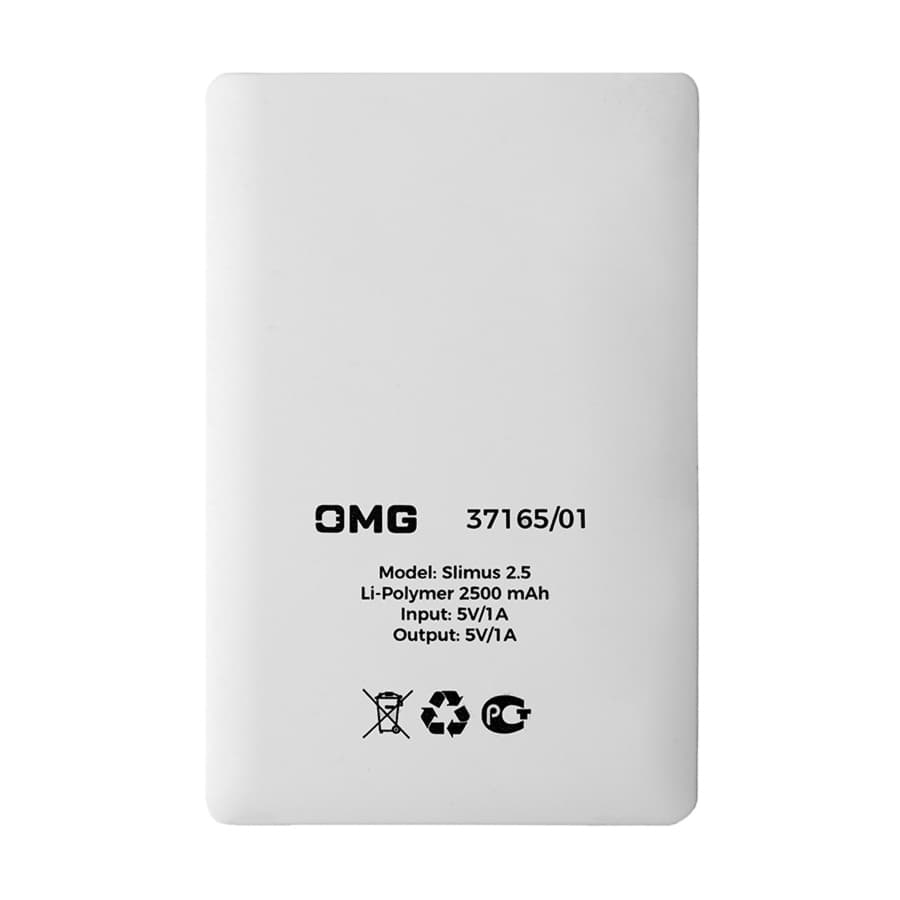 Универсальный аккумулятор Slimus 2.5 (2500 мАч), белый, 9,6х6.2х0,66 см