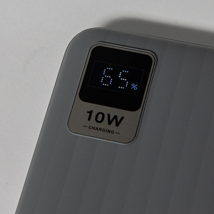 Внешний аккумулятор имеет пластиковый матовый корпус с ЖК-дисплеем, который покажет оставшийся уровень заряда в любой момент. Пауэрбанк заряжается через универсальный порт Type-C или Micro-USB и отдает энергию через два классических порта USB. Благодаря встроенному в корпус дисплею, следить за расходом батареи стало удобнее. Заряд показывается в процентах.Емкость батареи: 10 000 мАчТип батареи: литий-полимерМатериал корпуса: пластикВходные порты: Micro-USB, Type-CВыходные порты: USBВходное напряжение Ток: 5 В 2 AВыходное напряжение Ток: 5 В 2 AПровод для зарядки в комплектеИндикатор уровня заряда батареи на ЖК-дисплееВ комплект входит:1. Универсальный аккумулятор2. USB кабель с разъемом USB-A и Type-C для зарядки -