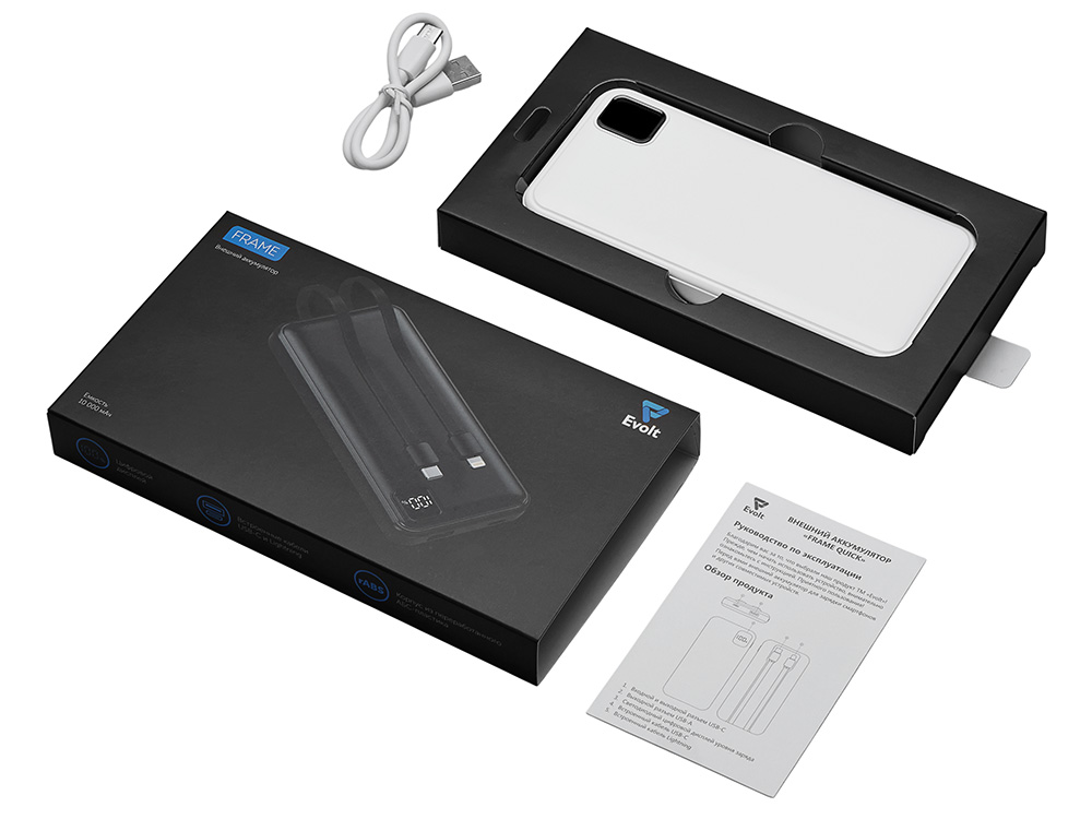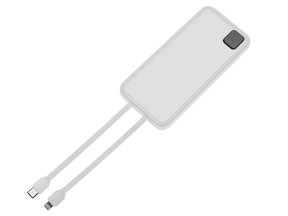 Удобный внешний аккумулятор с встроенными кабелями USB-C и Lightning — ваш надежный партнер в путешествиях, на встречах и в повседневных задачах. Цифровой дисплей в реальном времени показывает точный остаток заряда, а компактные габариты делают его таким же удобным, как смартфон. Прочный корпус из переработанного АБС-пластика и емкость 10000 мАч обеспечивают долгую работу даже при интенсивном использовании. Идеальный выбор для тех, кто ценит комфорт и функциональность в одном устройстве. Продуманная упаковка: для открытия просто потяните за язычок, и появится гаджет с нанесением.