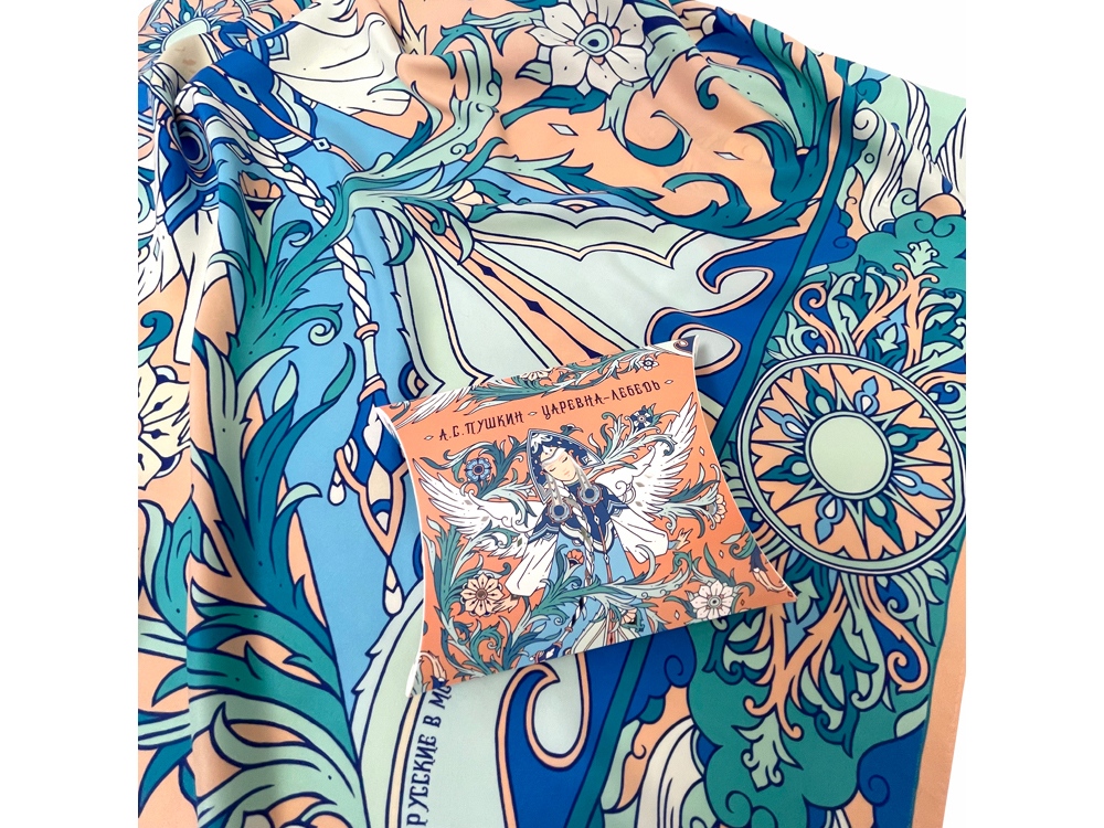 Дизайнерский платок Царевна Лебедь от Нины Ручкиной стал воплощением сказочного персонажа, прославленного великим и талантливым романтиком и поэтом — А. С. Пушкиным. Именно он впервые подарил нам образцы художественной русской эстетики, исходящей из самой глубины русской души.