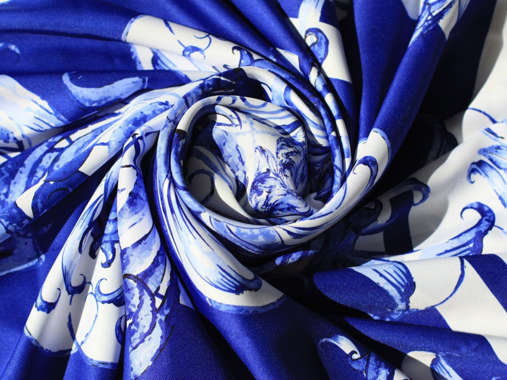 В дизайне нашего платка лаконичные соцветия тугих бутонов и ажурных раскинутых лепестков гармонично соседствуют с узнаваемыми сине-голубыми завитками, спиралями и линиями. Особое значение имеют изображения синих райских птиц, непременно приносящих удачу и счастье!