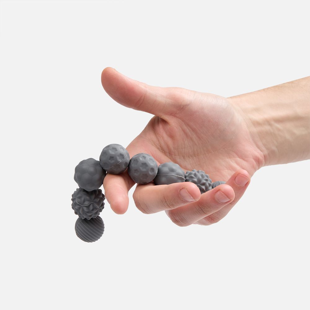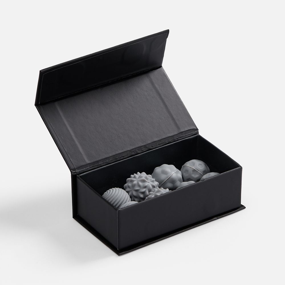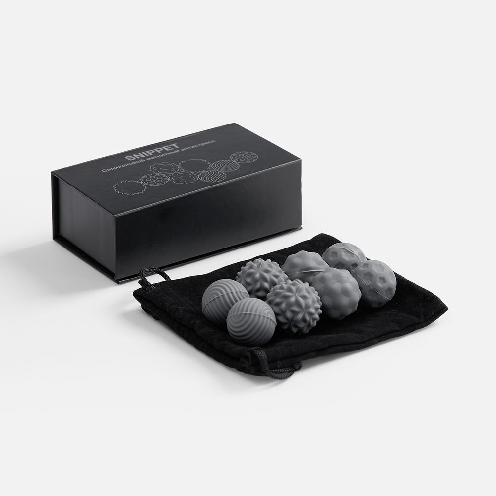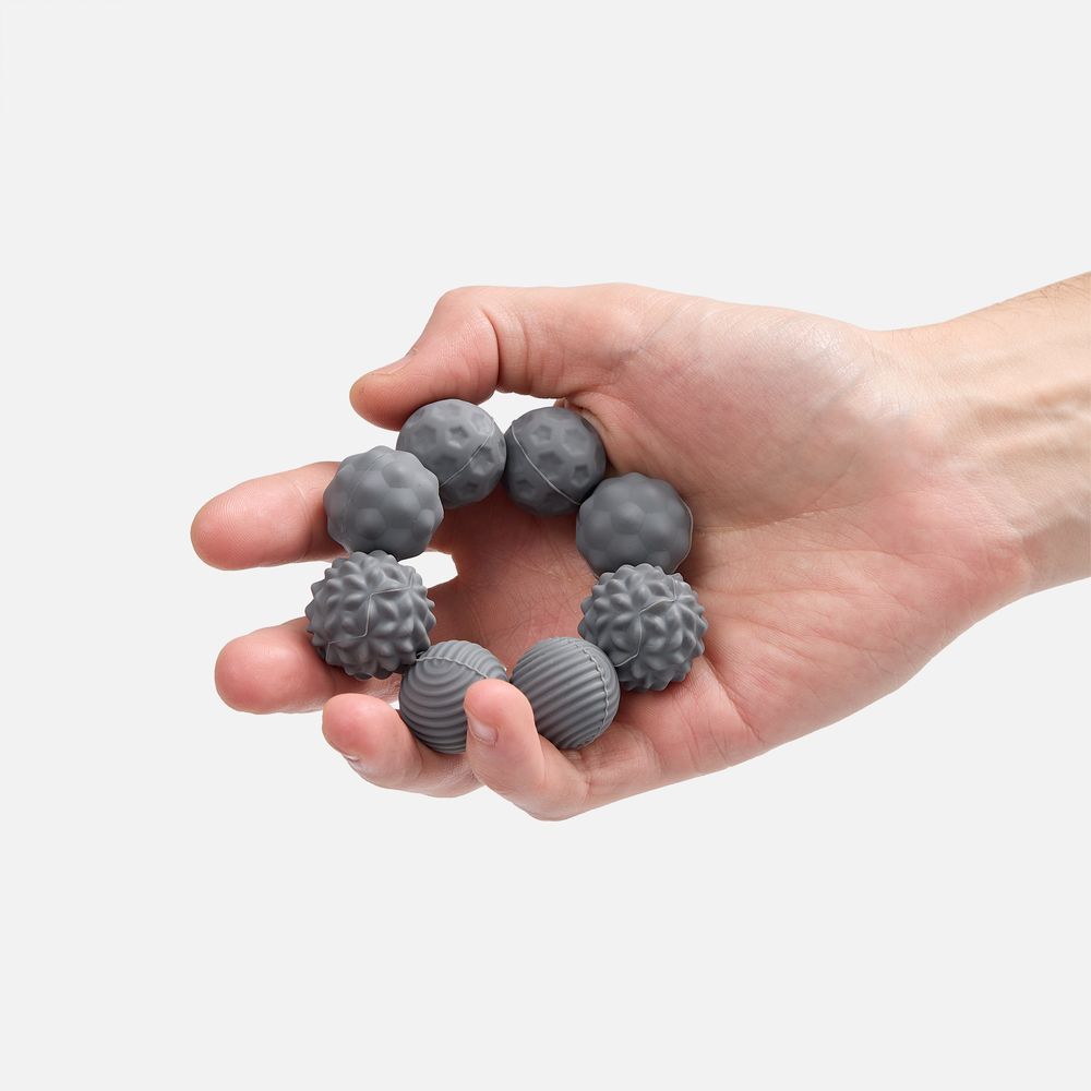 Шарики разной фактуры можно легко использовать как массажные.В комплекте: 8 шариков, мешочек, подарочная коробка на магнитном клипе.