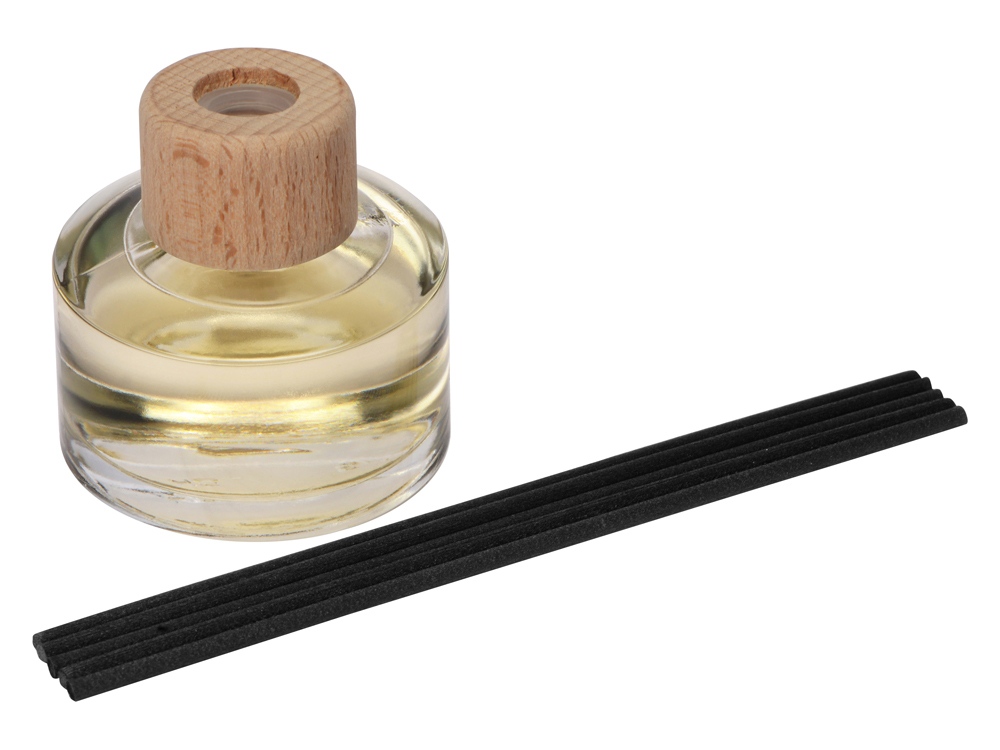 Объем диффузора 50мл. Его будет достаточно для умеренного поддержания аромата в комнате до 15м2 в течение двух месяцев использования.