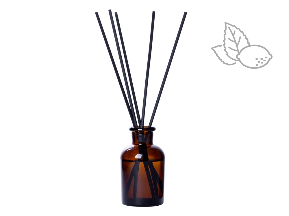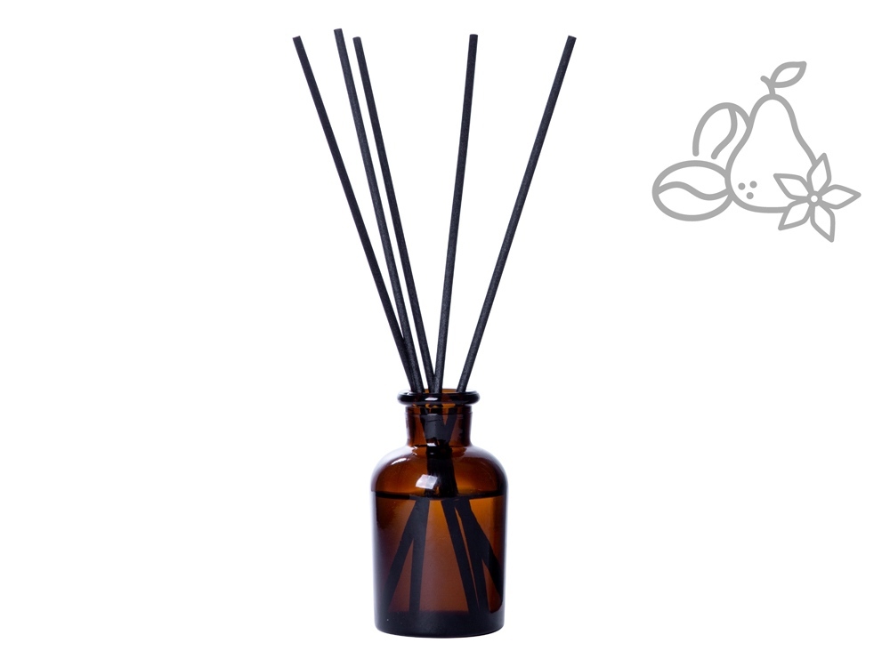 Объём диффузора 50 мл. Его будет достаточно для умеренного поддержания аромата в комнате до 15м2 в течение двух месяцев использования. Насыщенность аромата регулируется количеством используемых фибровых палочек.