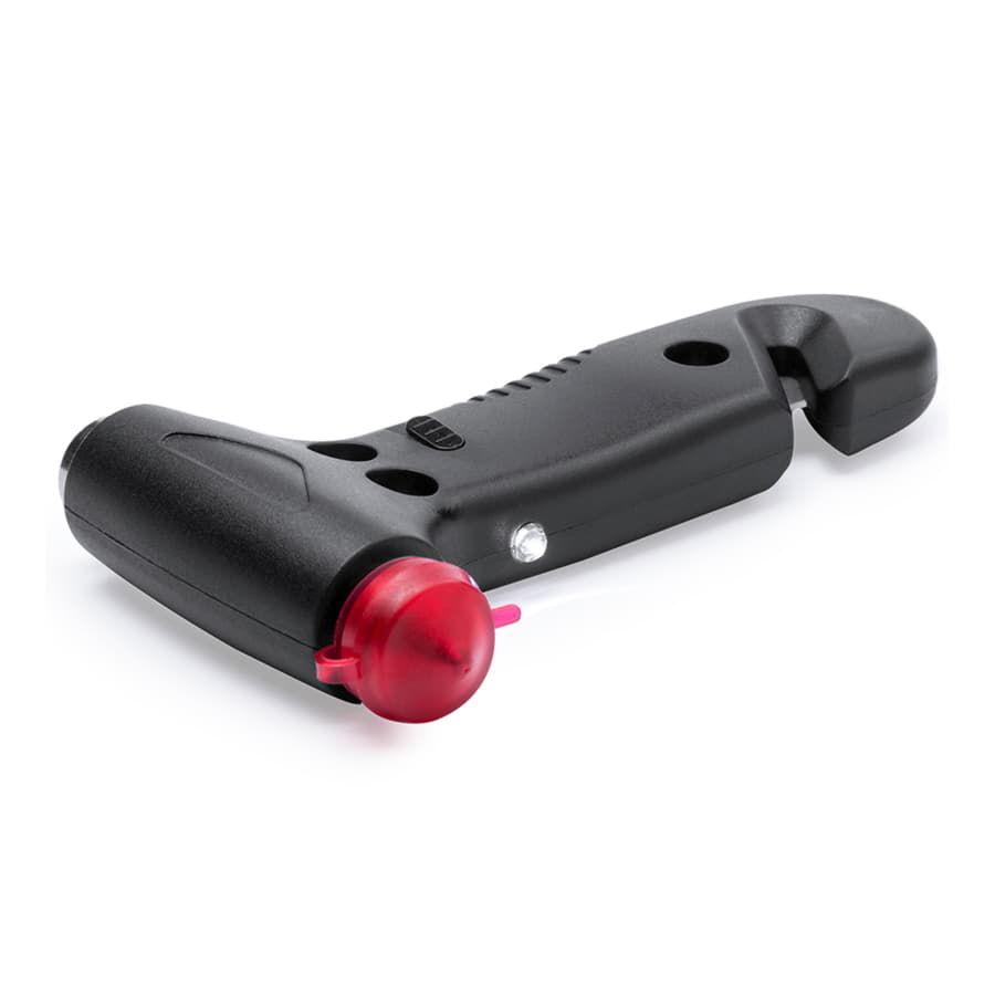 Автомобильный молоток с ножом для ремня безопасности и светодиодной подсветкой. 1 фонарик, 3 режима освещения. Батарейки входят в комплект. -