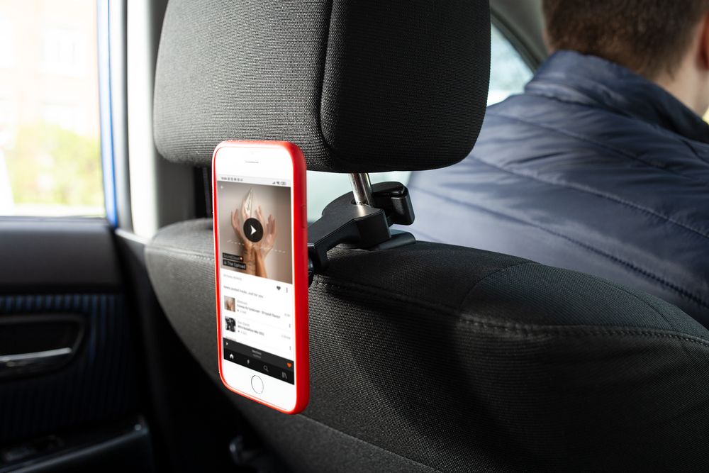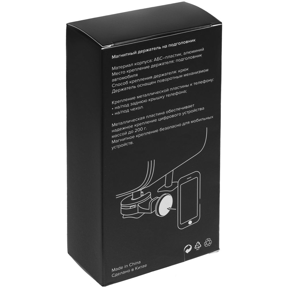 Держатель с помощью крюка крепится на подголовник.В комплекте две металлические пластины, которые можно приклеить с помощью двухстороннего скотча (в комплекте) или вложить под заднюю крышку или чехол, чтобы не портить внешний вид телефона.