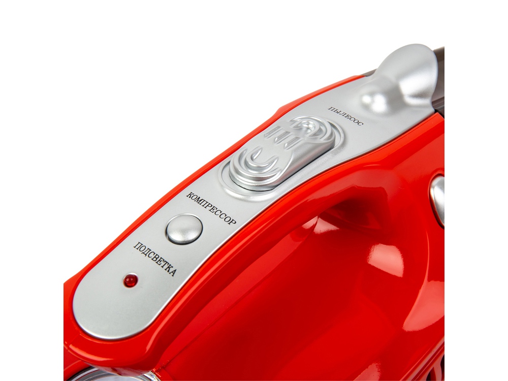 ●Светодиодная подсветка рабочей зоны обеспечит комфортную уборку ●В пылесос встроен компрессор для шин, в комплект входит шланг для компрессора