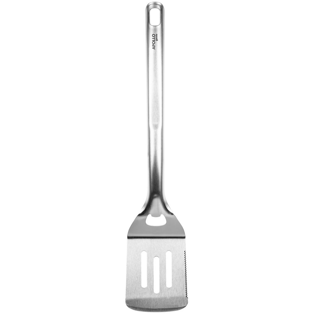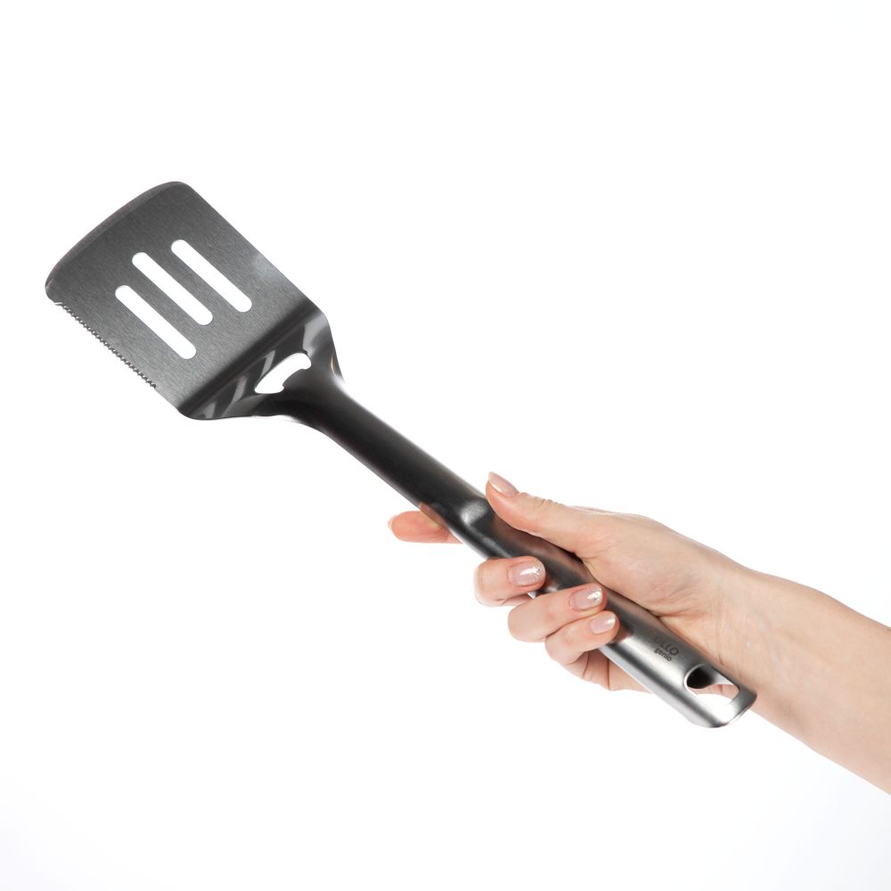 Лопатка Grillo предназначена для переворачивания продуктов на гриле, мангале или жаровне. Прорези позволяют стекать излишкам масла, соуса или жидкостей. Зубчатый край поможет разрезать большие куски при подаче, а встроенная открывашка — не остаться без прохладительного напитка. Имеет оптимальную для безопасного использования длину и отверстие, позволяющее удобно подвесить прибор на крючок.- Вид полировки: сатиновая.