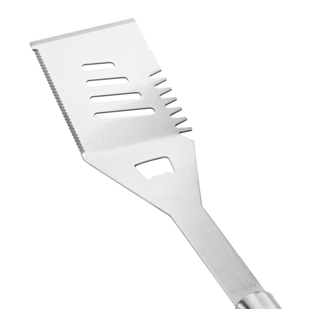 Лопатка Ribeye предназначена для переворачивания продуктов на гриле, мангале или жаровне. Прорези позволяют стекать излишкам масла, соуса или жидкостей. Рабочая часть лопатки изготовлена из нержавеющей стали и выдерживает высокие температуры.