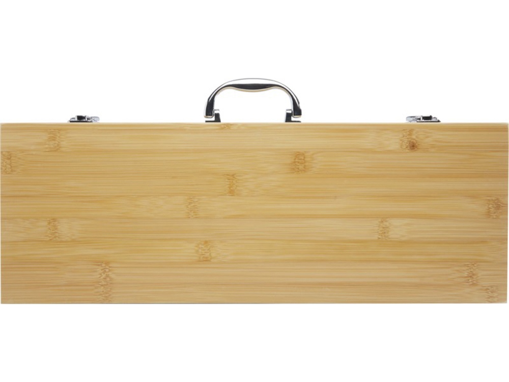 Набор для барбекю из 3 предметов из бамбука: лопатка (42 x 9,5 см), щипцы (46 x 2,2 см) и вилка (43 x 3,2 см). Набор поставляется в подарочной коробке из бамбука (51,5 x 18,2 x 7,2 см). Ручки и подарочная коробка изготовлены из бамбука, который производится в соответствии со стандартами устойчивого развития. -