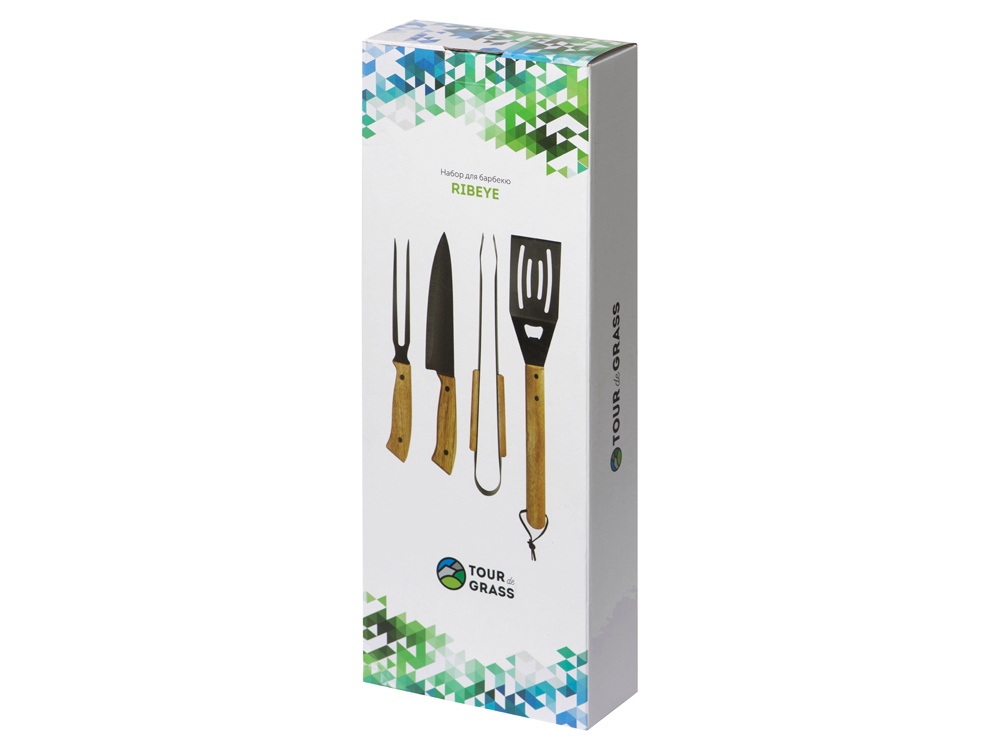 Набор Ribeye включает в себя инструменты, облегчающие приготовление блюд барбекю на природе: нож, большая двузубая вилка, спатула — она же удобная лопатка, и щипцы. С ними готовить мясо, рыбу и овощи на гриле станет еще приятнее.