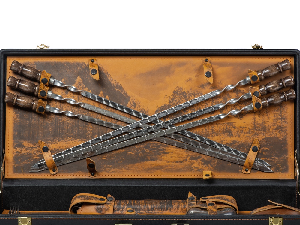 Кейс из сплит-кожи, с повышенной износостойкостью, внутренняя отделка натуральная кожа с художественным выжиганием.