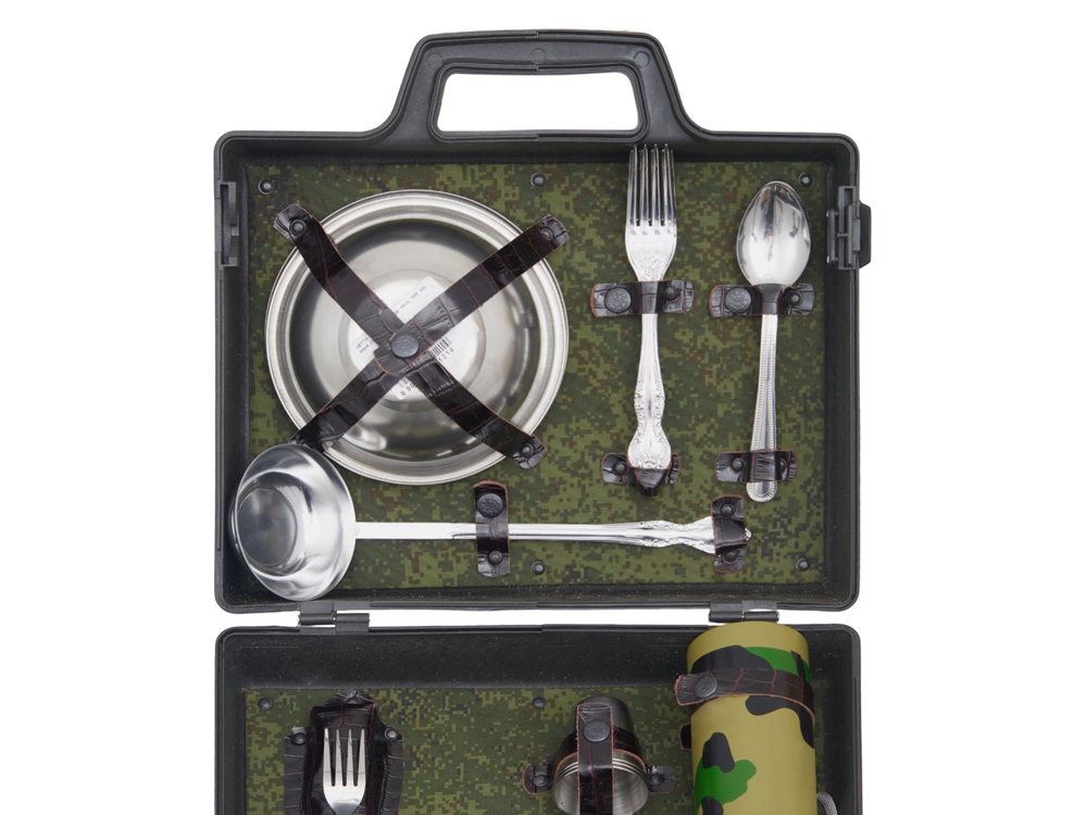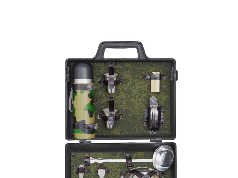 Все элементы набора выполнены из качественной нержавеющей стали, что обеспечивает долговечность и легкость в уходе. Упакованы в пластиковый кейс и надежно закреплены ремешками из натуральной кожи, что обеспечивает удобство транспортировки и сохранность содержимого.