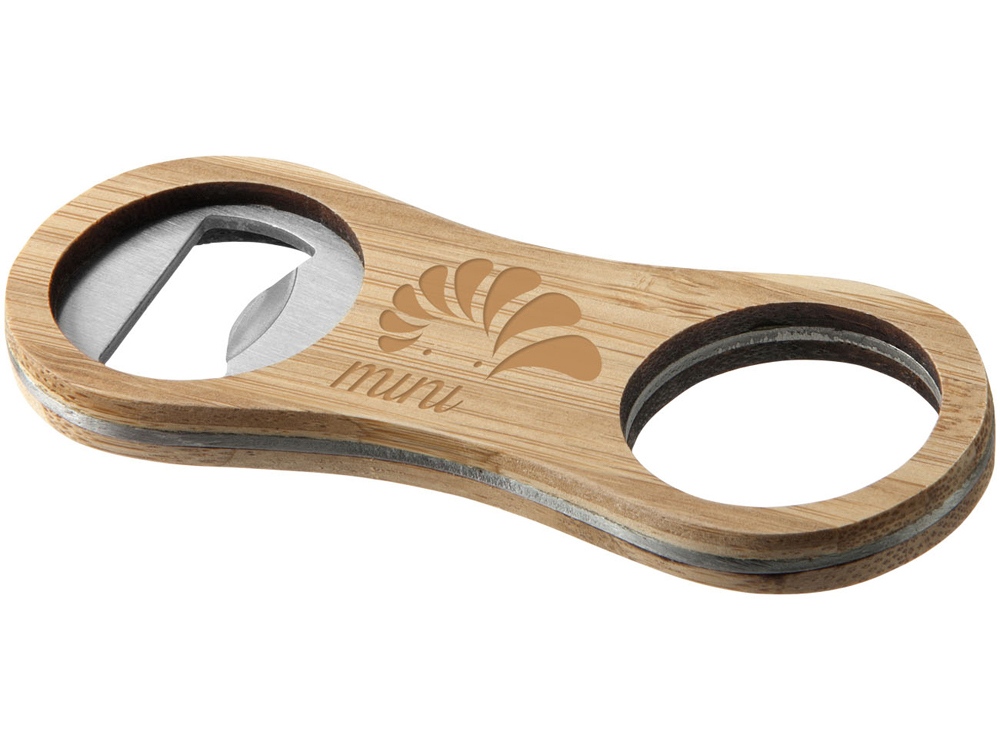 Бамбуковая открывалка для бутылок Barron. Открывалка для бутылок, изготовленная из прочного бамбукового материала с логотипом по середине. Бамбук и нержавеющая сталь. -