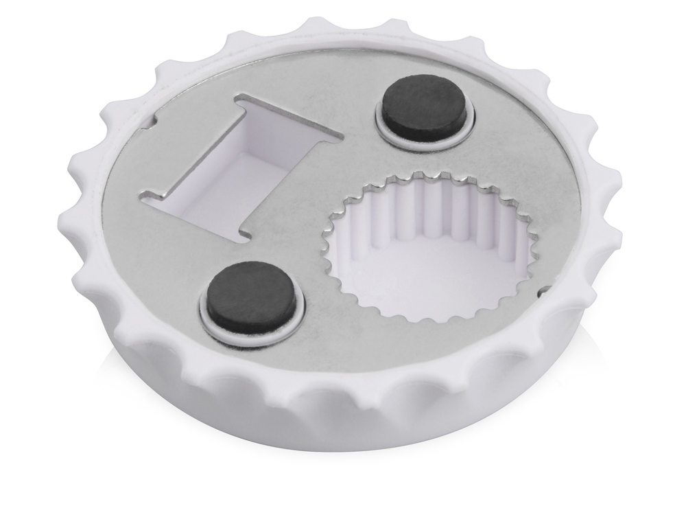 Открывалка в форме крышки – креативное и удобное приспособление. Вы никогда не потеряете ее, ведь открывалка легко крепится на холодильник двумя магнитами. -