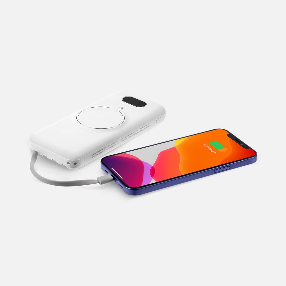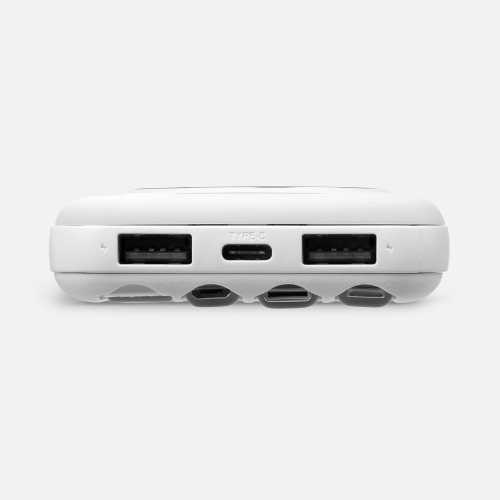 Интересная особенность аккумуляторов Omni — совершенно автономная конструкция: встроенные кабели позволяют заряжать как самые разные электронные устройства, так и сам аккумулятор. Если же смартфон поддерживает беспроводной заряд, то кабель вообще не нужен. Наглядный индикатор заряда в процентах.- Литий-полимерный аккумулятор
