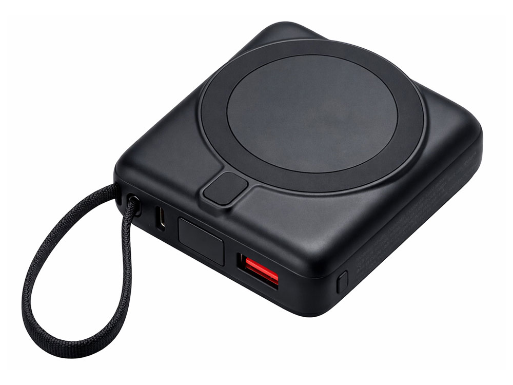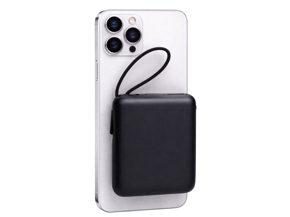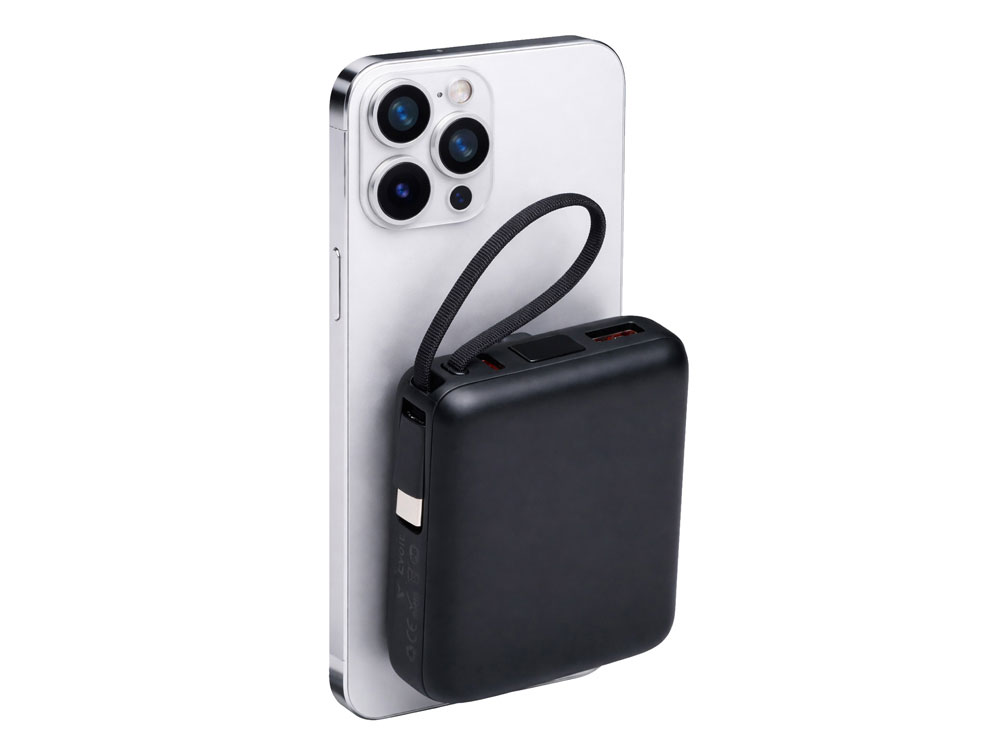 Магнитный пауэрбанк с эффектными возможностями брендирования. Компактный беспроводной аккумулятор с магнитным креплением MagSafe — идеальный корпоративный подарок для клиентов и партнеров. Уникальная особенность: логотип с подсветкой виден даже когда пауэрбанк прикреплен к телефону. Встроенный двусторонний USB-C кабель устраняет необходимость носить дополнительные провода — заряжайте устройства и сам аккумулятор одним кабелем.