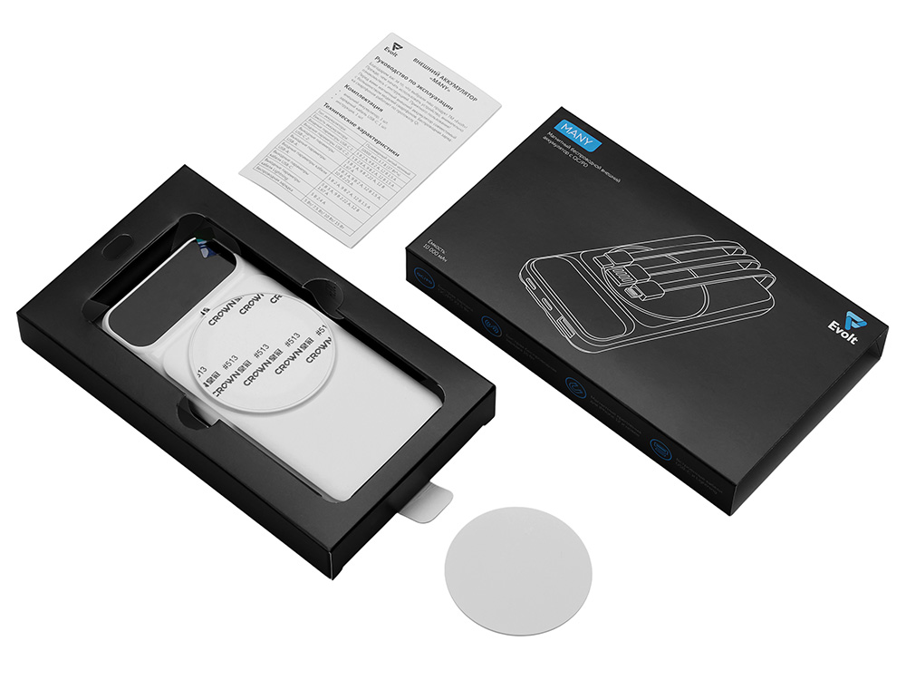 Магнитный беспроводной внешний аккумулятор со встроенными кабелями Мэни, 10000 мАч