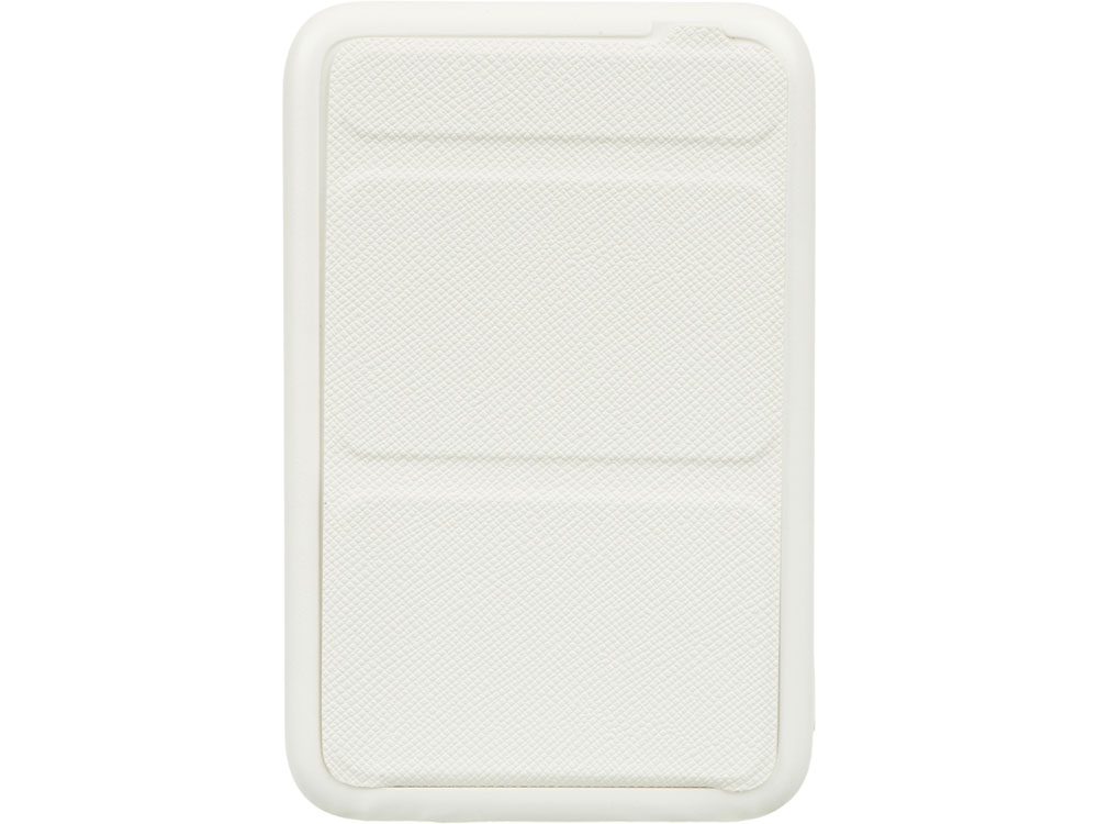 Сзади расположена пластичная складная подставка из качественного полиуретана с зернистой текстурой. В развернутом виде на столе подставка позволяет пользоваться смартфоном одной рукой, при этом, благодаря магнитным держателям, смартфон может быть расположен как вертикально, так и горизонтально.