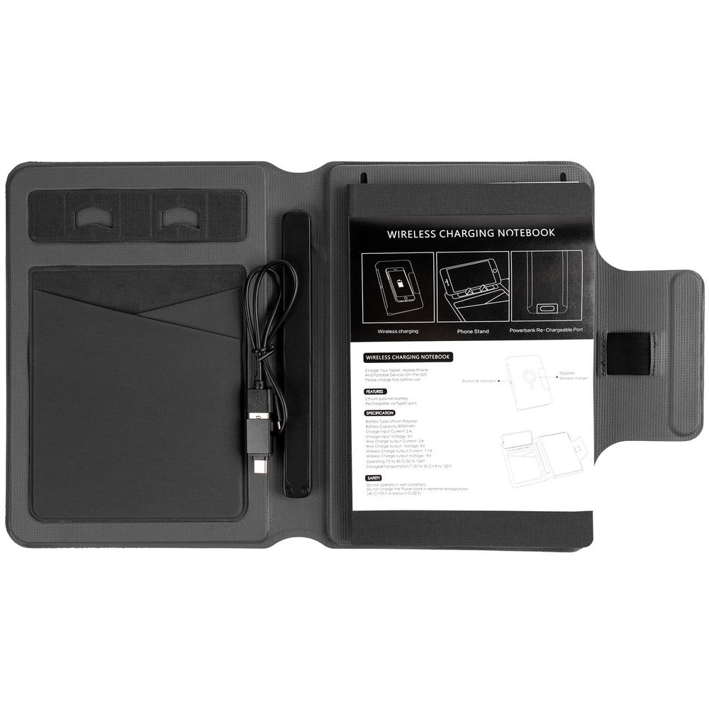 Внимание! Не все модели смартфонов поддерживают функцию беспроводной зарядки. - Съемный блокнот формата А5, 64 листа в линейку из тонированной бумаги;