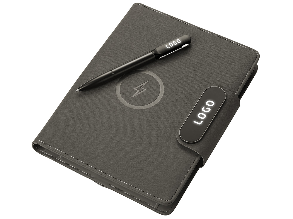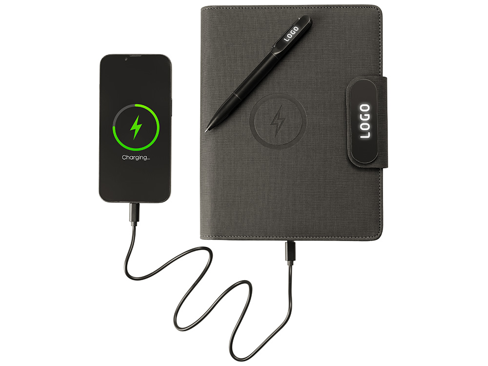 Подарочный набор Twilight: органайзер А5 с беспроводной зарядкой и металлическая шариковая ручка со светящимся логотипом