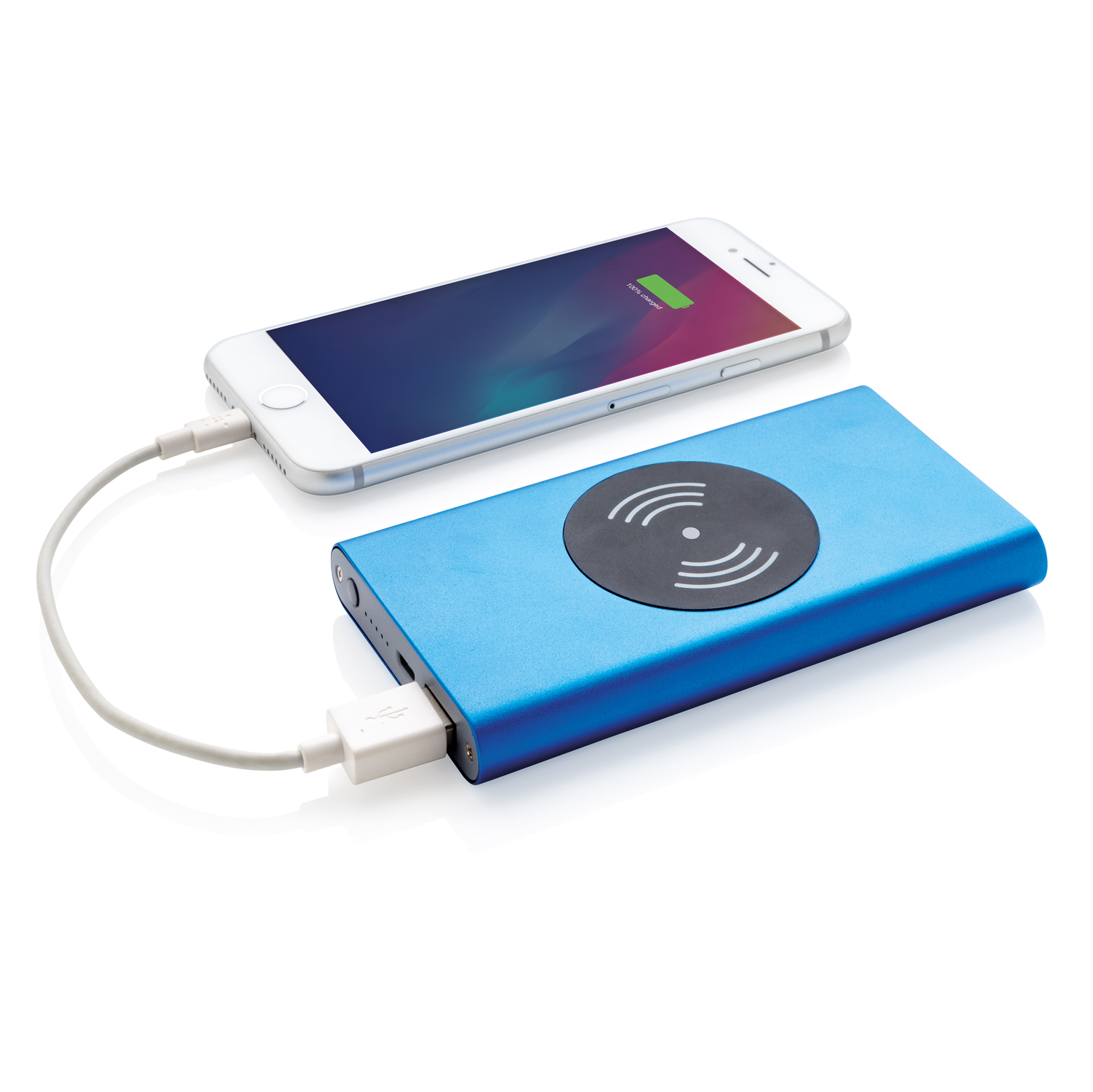 Тонкий беспроводной внешний аккумулятор 5W со встроенной литиево-полимерной батареей на 4 000 мАч изготовлен в стильном и надежном алюминиевом корпусе.