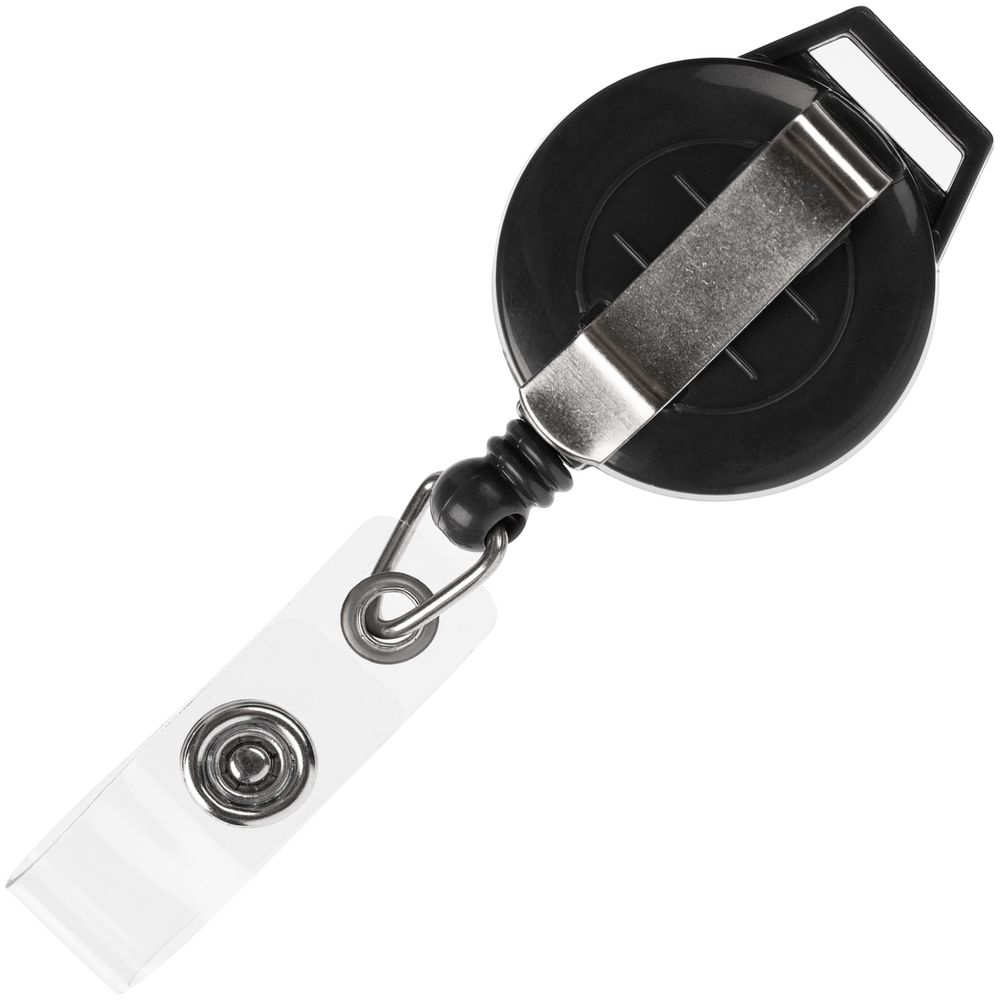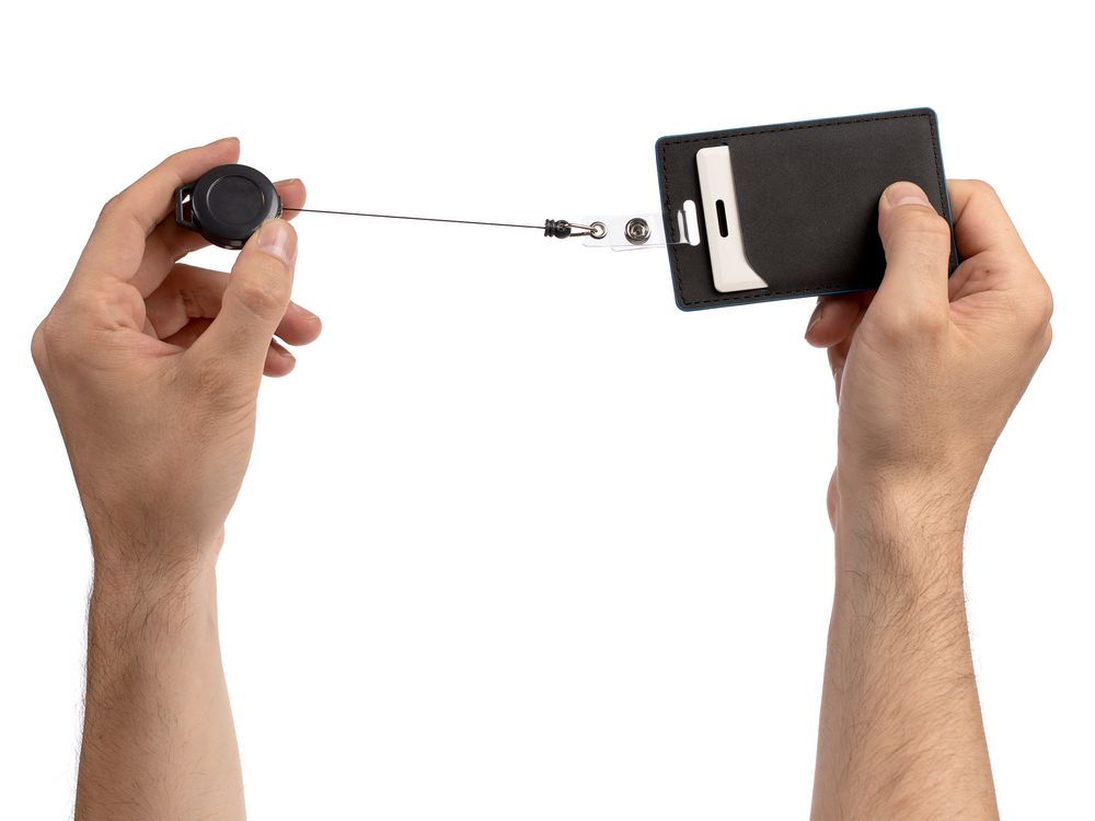 На ретрактор можно поместить бейдж, визитку или магнитную карту. В корпусе спрятан сворачивающийся шнур, который позволяет при необходимости демонстрировать содержимое держателя, не снимая его.