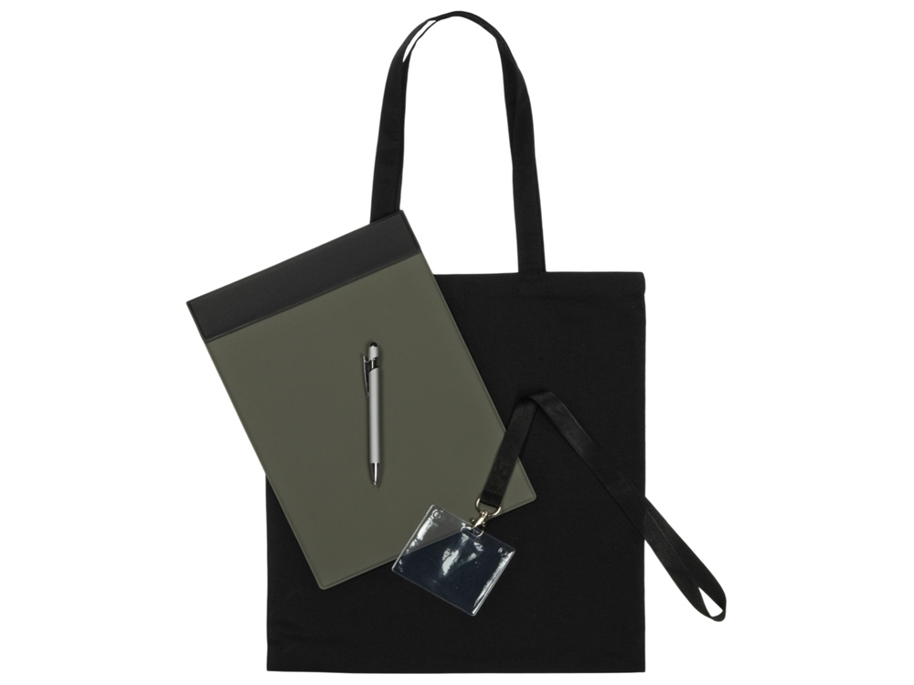Базовый набор для конференций. В наборе: магнитный планшет для бумаг, ручка для записей, ланъярд и чехол для бейджа участника и шоппер, в который все можно удобно сложить. -