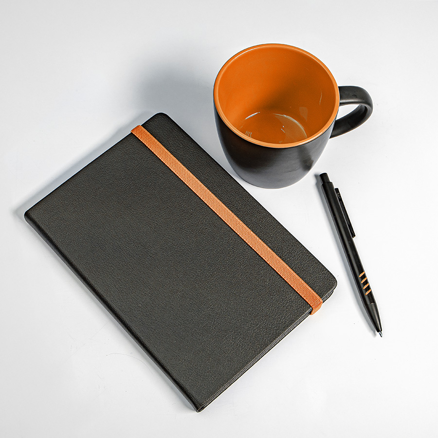 Набор подарочный HYPER: кружка, ежедневник, ручка; черный/оранжевый