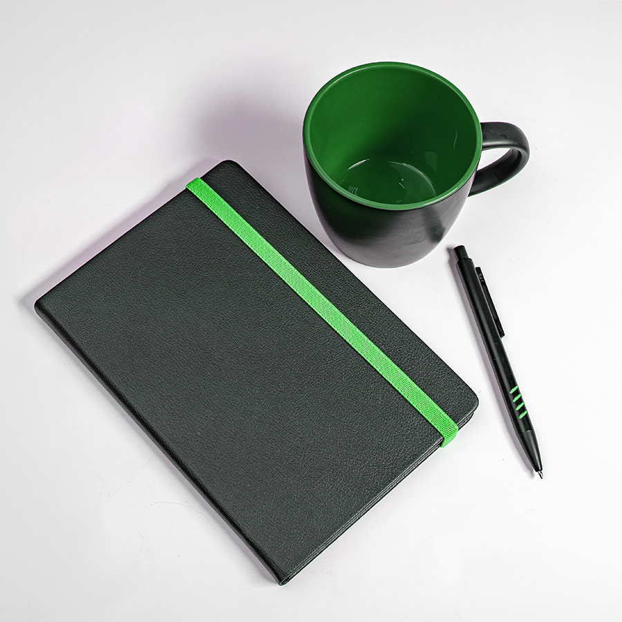 Набор подарочный HYPER: кружка, ежедневник, ручка; черный/зеленый