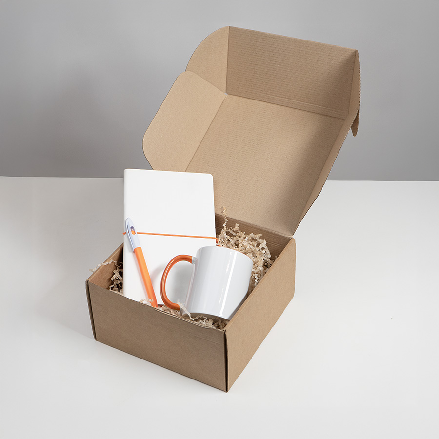 Набор подарочный WHITE VEIL: блокнот, ручка, кружка; белый/оранжевый