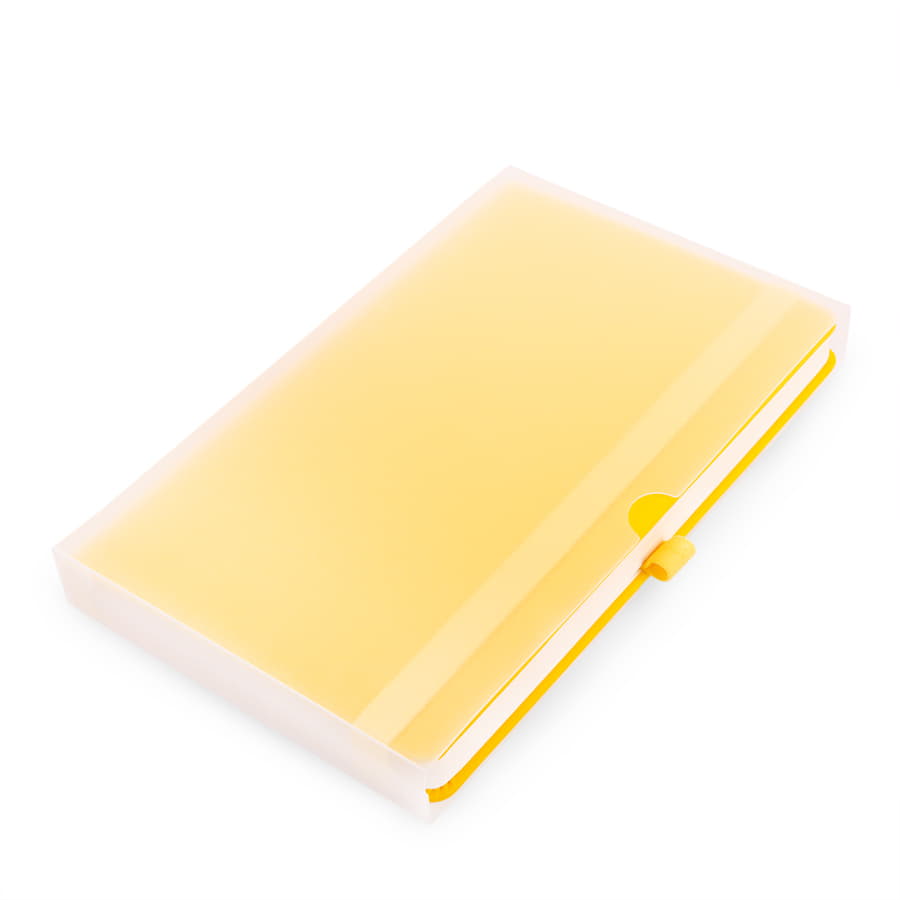 Самый популярный блокнот в твердой обложке, с эластичной резинкой, пенхолдером и ляссе в тон.Термоактивный классический PU материал Silk PlusЦвет обложки, близкий к Pantone 2292UВнутренний блок 256 страниц в линейкуИдеально скругленные углы блокаПерфорированные 8 последних листовКремовая FSC бумага 70г м2Карман для мелочейИндивидуальная упаковка: прозрачный сливбокс -