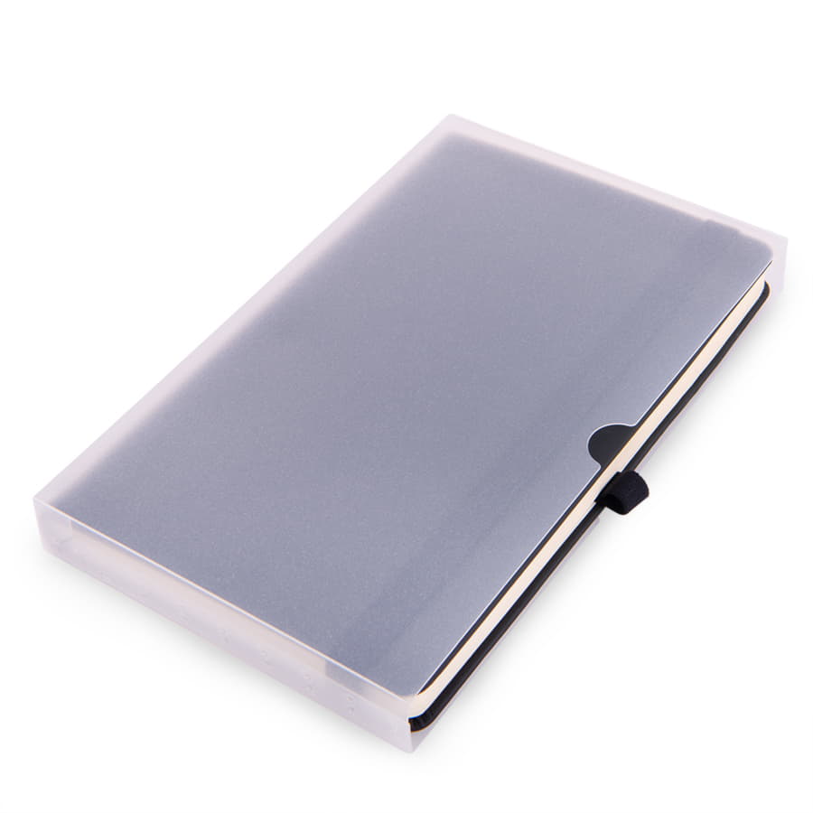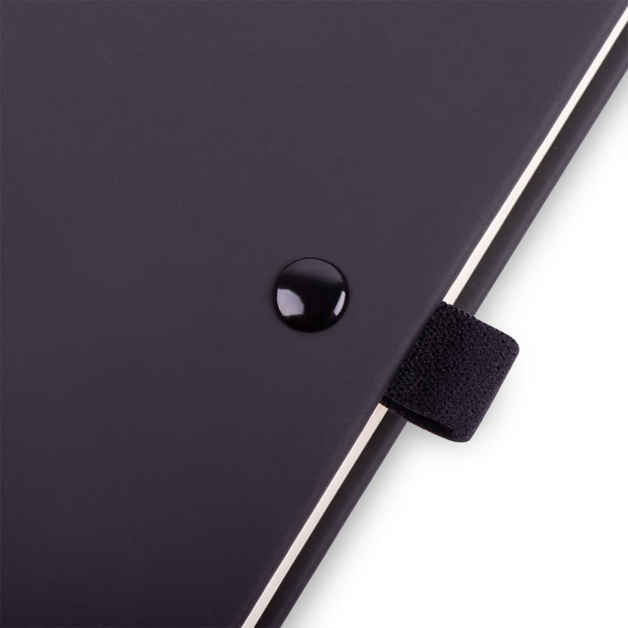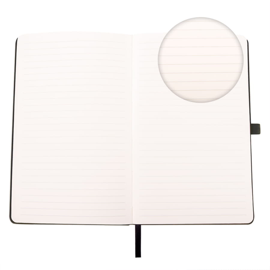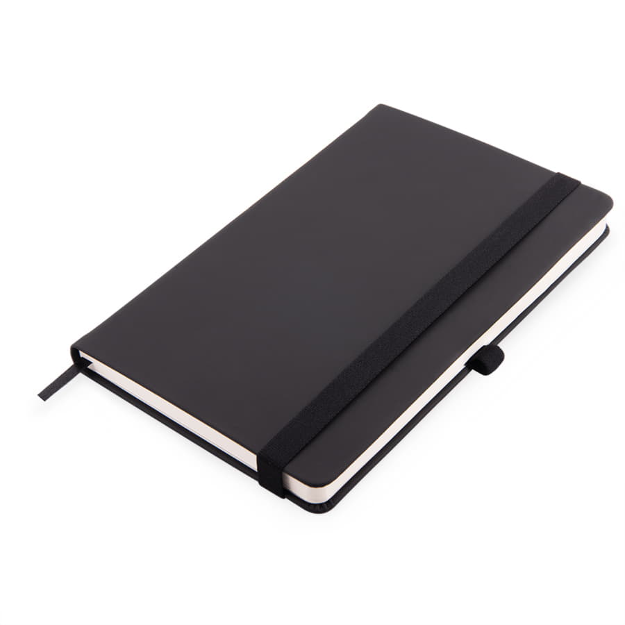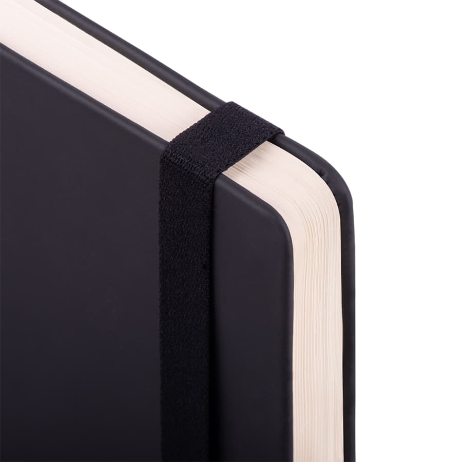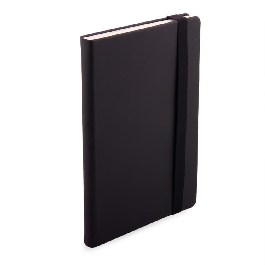Самый популярный блокнот в твердой обложке, с эластичной резинкой, пенхолдером и ляссе в тон.Термоактивный классический PU материал Silk PlusЦвет обложки, близкий к Pantone Black CВнутренний блок 256 страниц в линейкуИдеально скругленные углы блокаПерфорированные 8 последних листовКремовая FSC бумага 70г м2Карман для мелочейИндивидуальная упаковка: прозрачный сливбокс -