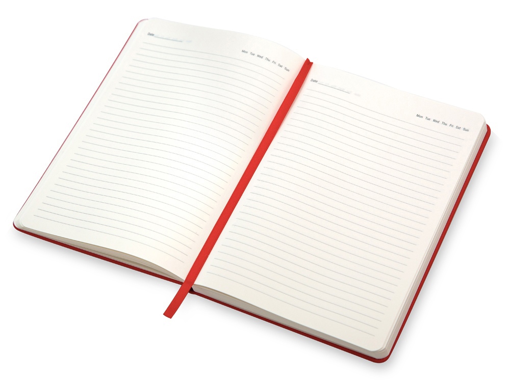 В блокноте 256 страниц, даты не указаны, это удобно тем, что вы можете самостоятельно их вписать в специальное поле или выделить нужный день недели.