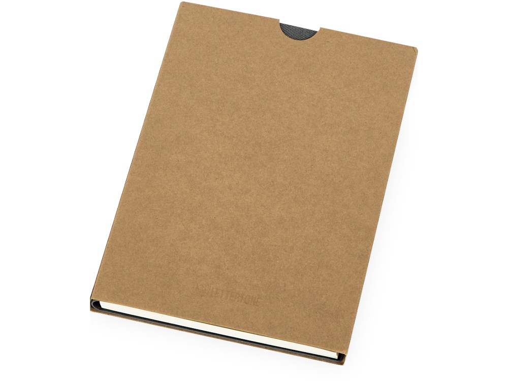 Обложка выполнена из двух видов искусственной кожи: рифленого, в тонкую полоску, основного материала и патча с покрытием софт-тач, который очень приятен на ощупь. Упаковка — шубер из крафта.