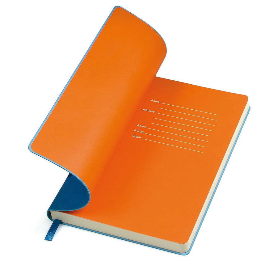 Бизнес-блокнот FUNKY, 130*210 мм, синий, оранжевый форзац, мягкая обложка, блок-линейка