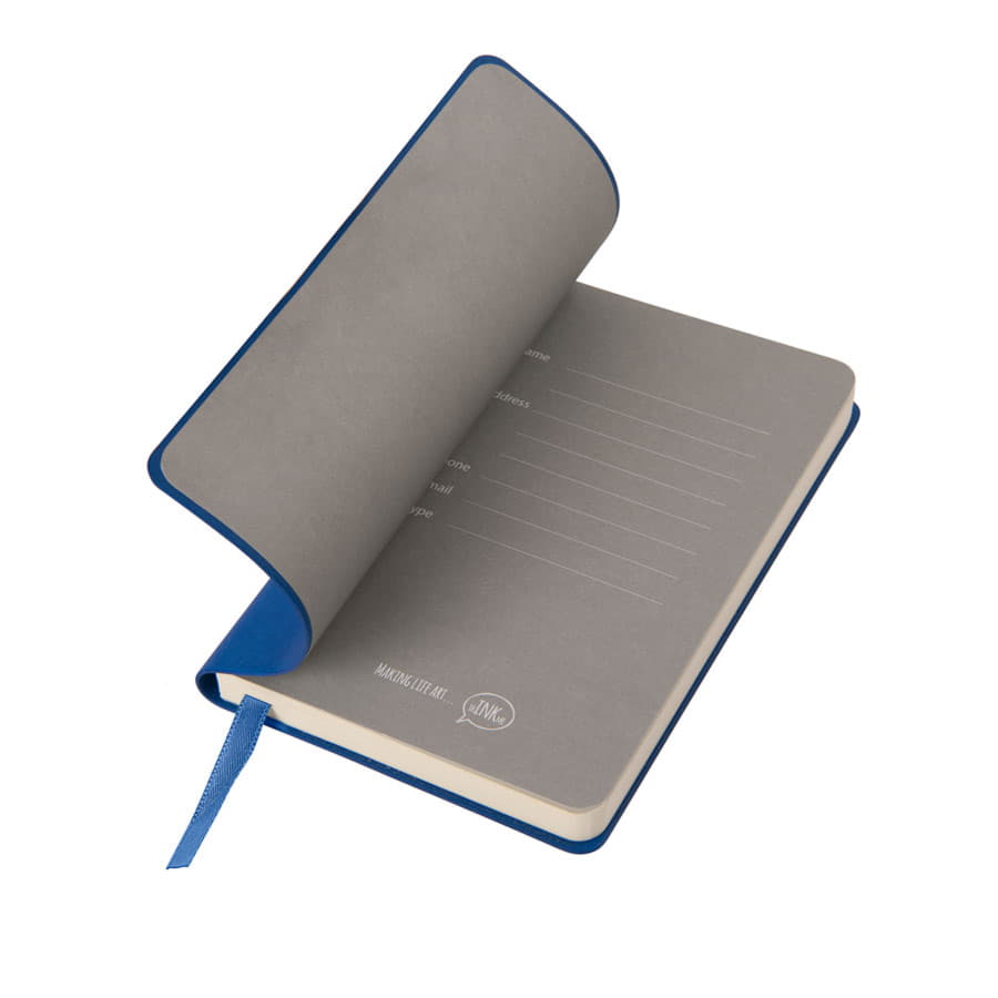 Блокнот с мягкой термоактивной обложкой и популярной комбинацией цветов Термоактивный PU материал Velvet Цвет обложки, близкий к Pantone 2386С Цвет форзаца, близкий к Pantone Cool Gray 5U Внутренний блок 192 страницы в клетку Идеально скругленные углы блока Перфорированные 8 последних листов Кремовая FSC бумага 70 г м2 Ляссе в тон обложки Фирменный сливбокс thINKme -