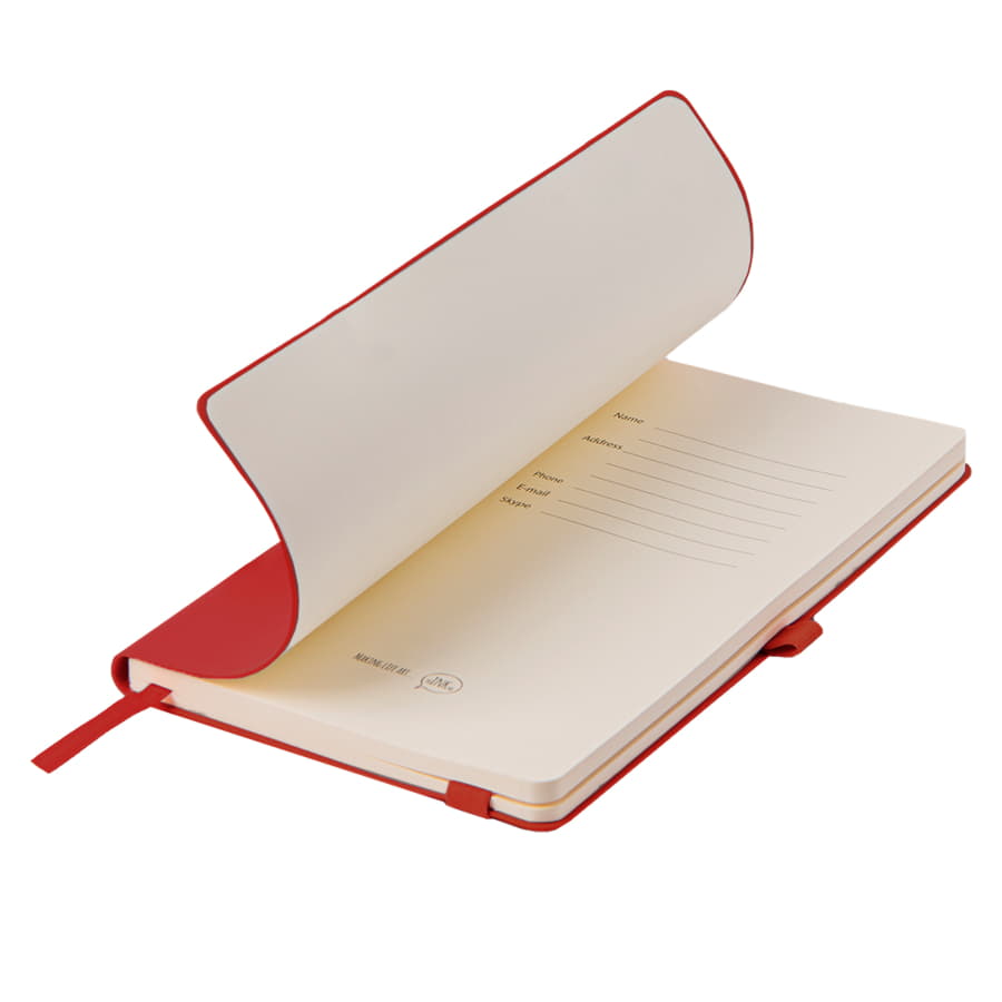 Soft-touch блокнот с покрытием, защищающим от царапин FSC сертификат Мягкая термоактивная обложка PU нового поколения Silk Plus Пантон, близкий к 200C Кремовая бумага (блок 70 гр, форзац 160 гр) Блок 192 стр. в линейку Перфорация 8 последних листов. Ляссе в тон обложке. Практичные закругленные углы. Надежный прошитый переплет. Упаковка: фирменный слив-бокс -