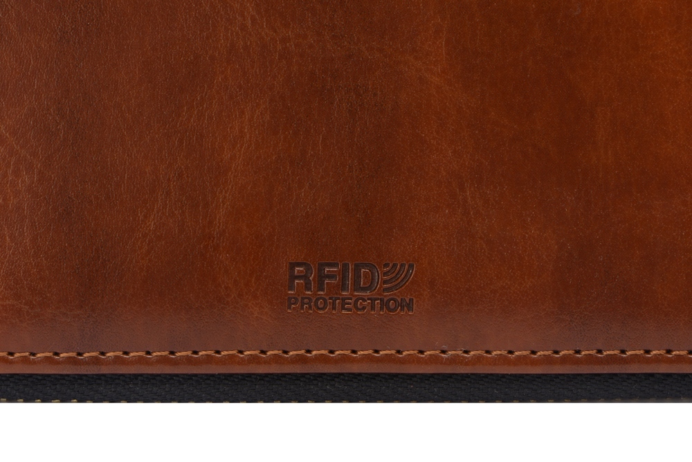 Блокнот снабжен 5 отделениями для карт и RFID защитой, которая охраняет вашу личную и финансовую информацию от мошенников. Внутри блокнота есть петля для ручки в тон (ручка в комплект не входит).