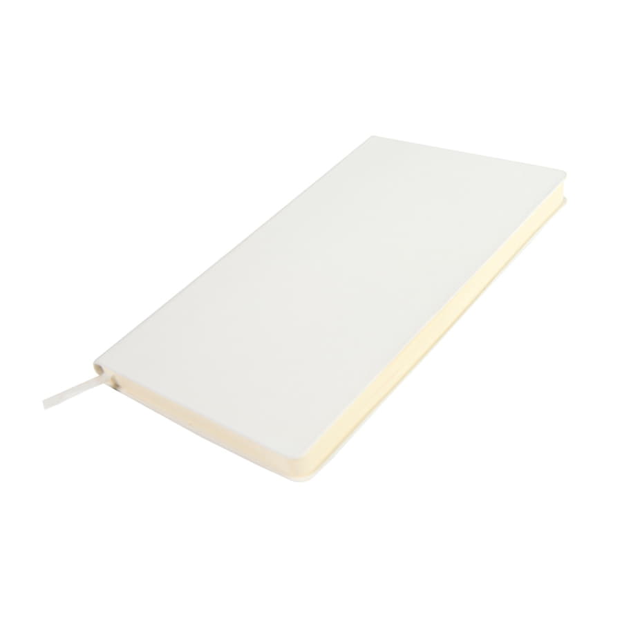 Размер: 130х210 мм Переплет: мягкий Обложка: термоактивный PU Virtu, по фактуре напоминающий, дорогую телячью кожу Цвет обложки: белый Форзац нахзац: кремовый Блок: недатированный Разлиновка: в клетку Количество страниц: 256 Углы блока: скругленные Цвет бумаги: кремовый Плотность бумаги: 70г м2 Ляссе: в тон обложке Карман для визиток: есть Упаковка: фирменный сливбокс thINKme -