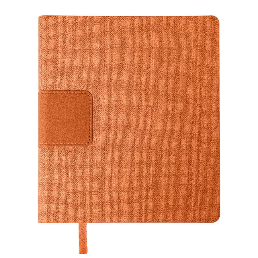 TWEEDI – бизнес-блокнот в мягкой обложке Размер 150*180 мм Обложка из PU Nubbi c декоративным элементом из PU Suede Цвет обложки близок к pantone 166CВнутренний блок 256 страниц в линейкуИдеально скругленные углы блокаПерфорированные 8 последних листов Кремовая eco-friendly эвкалиптовая FSC бумага 70 г м2Ляссе в тон обложкиИндивидуальная упаковка: фирменный thINKme sleeve-box -