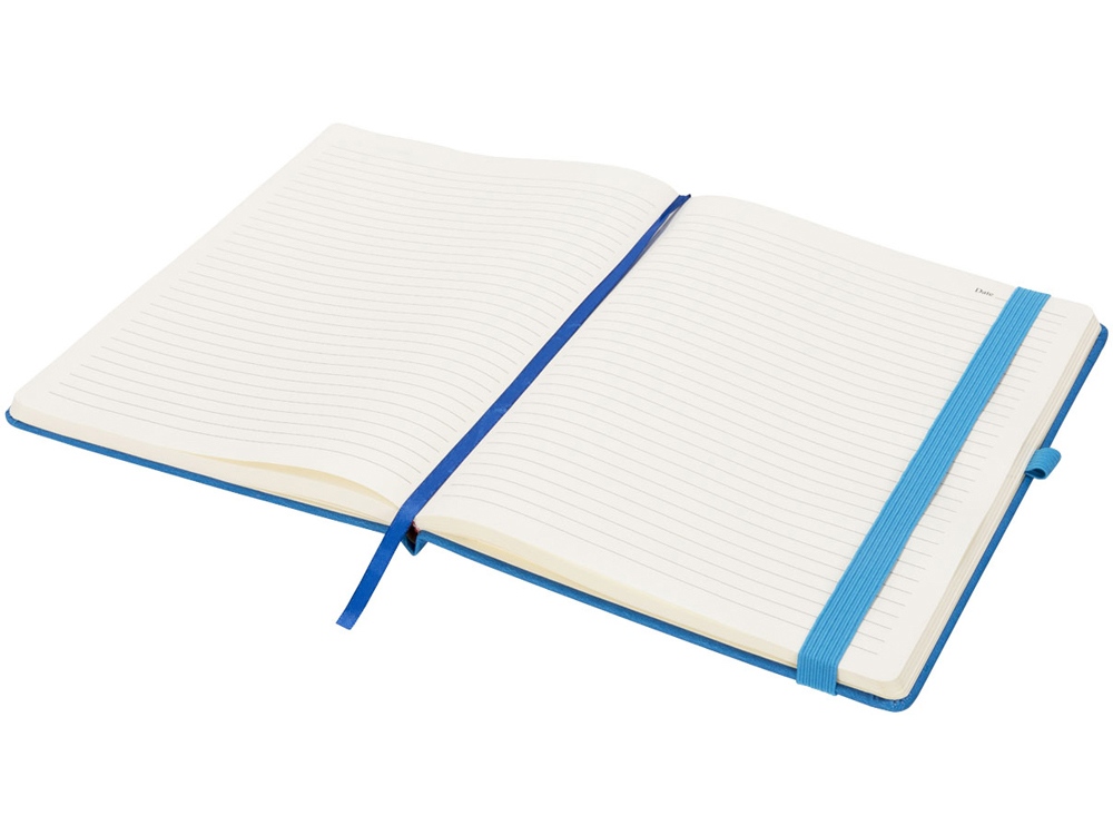 Блокнот Rivista большого размера. Блокнот Rivista отличается стильным современным дизайном с высококачественной обложкой, идеально подходящей для нанесения логотипа и информации вашей компании. Предлагаются современные цвета. Также предусмотрена эластичная застежка, держатель для ручки, лента-закладка и кармашек изнутри на задней стороне обложки. Содержит 128 листов линованной бумаги (70 г/м²) кремового цвета. ПУ. -